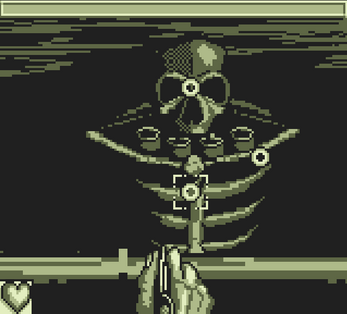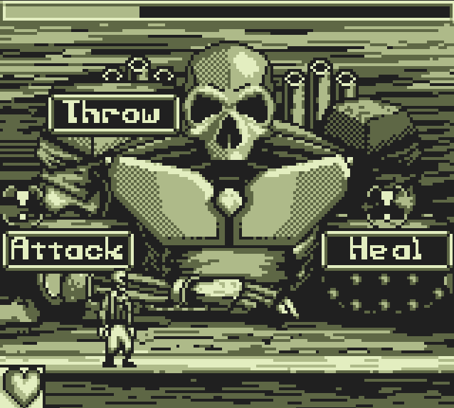 Use the RPG menu options to attack, heal, and use throw to disable parts of the robot while dodging its attacks against you.